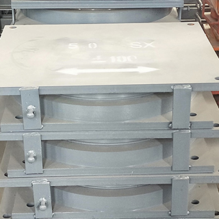 橡膠材料具有優(yōu)異的阻尼特性,在工程技術(shù)和尖端科學(xué)中早已用其作減震制品。根據(jù)“基礎(chǔ)隔震”概念研發(fā)出來的隔震橡膠支座,使傳統(tǒng)的、被動的“以剛克剛”的抗震方法,轉(zhuǎn)變?yōu)橹鲃拥?、積極的“以柔克剛”的隔震方法。目前采用橡膠支座是世界上研究和應(yīng)用最多、技術(shù)成熟并有成效顯著實例的隔震技術(shù)。普通疊層橡膠支座是用天然橡膠或氯丁橡膠制造的,通常把用天然橡膠制造的普通疊層橡膠支座又稱為天然橡膠疊層橡膠支座或標(biāo)準(zhǔn)疊層橡膠支座。這種支座具有高彈性,在水平方向上起彈簧作用,但阻尼性能較低,一般不單獨使用。為了滿足隔震結(jié)構(gòu)體系對阻尼值的要求,通常與外加阻尼器(消能裝量)一起并用。