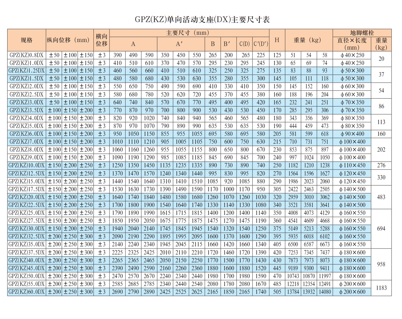 本系列支座設(shè)計承載力分 31 級,即 0.8、1、1.25、2、2.5、3、3.5、4、5、6、7、8、9、10、12.5、15、17.5、20、22.5、25、27.5、30、32.5、35、37.5、40、45、50、55 和 60MN。支座設(shè)計承載力允許超載 10%。